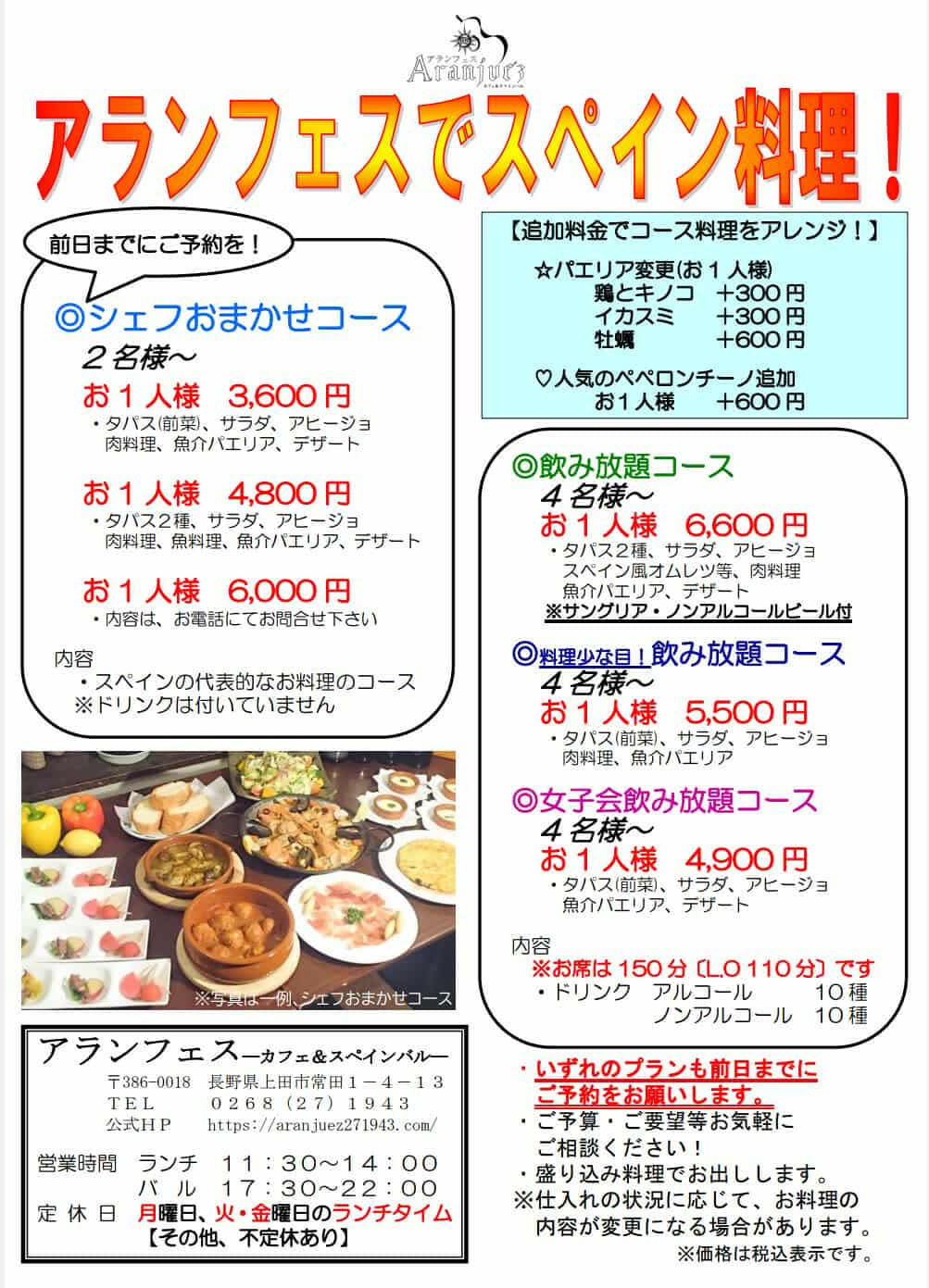いずれのプランも前日までにご予約をお願いします。